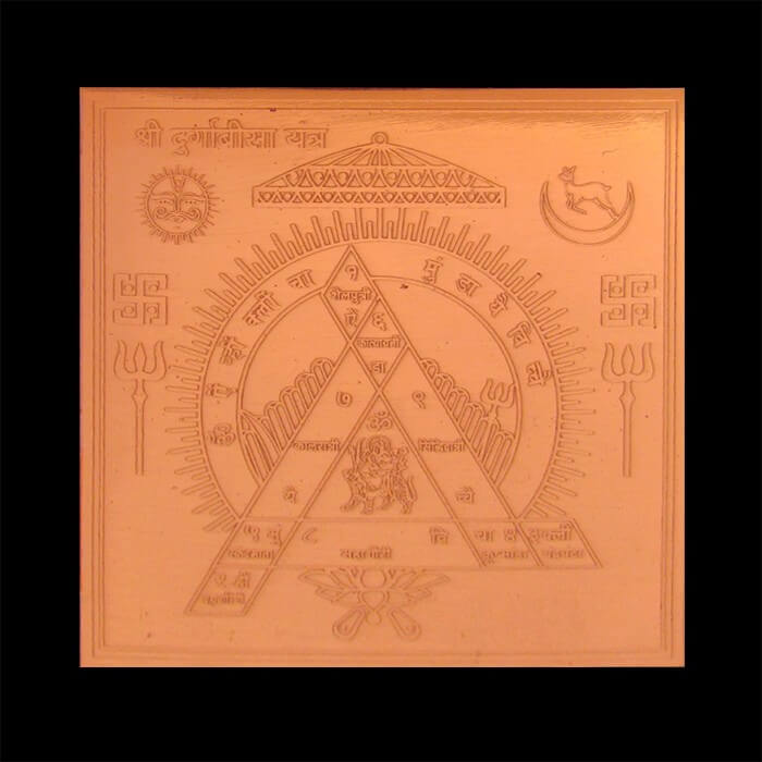 Symbolically, the yantra represents strength, courage, and the protective energies associated with Goddess Durga. The geometric patterns within the yantra act as conduits for cosmic energies to flow, aligning the devotee with Goddess Durga’s fierce and compassionate aspects.